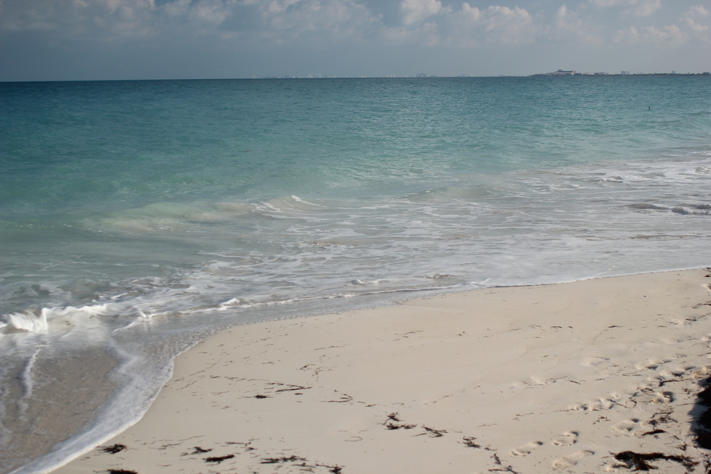 tags: foot marks mexico blue water sea shore