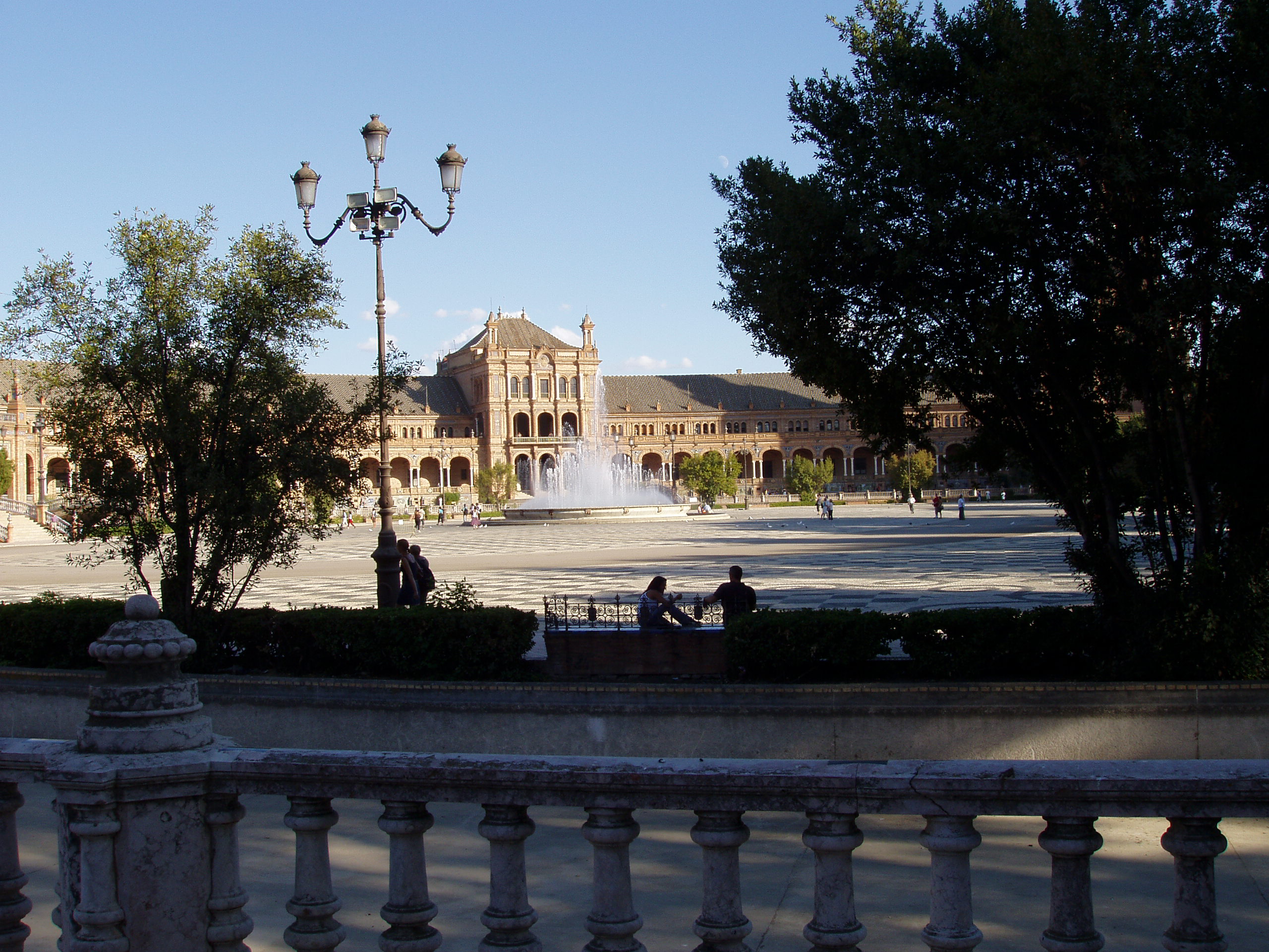 description:The long stretch of the palace is captured from a balcony at a distance.