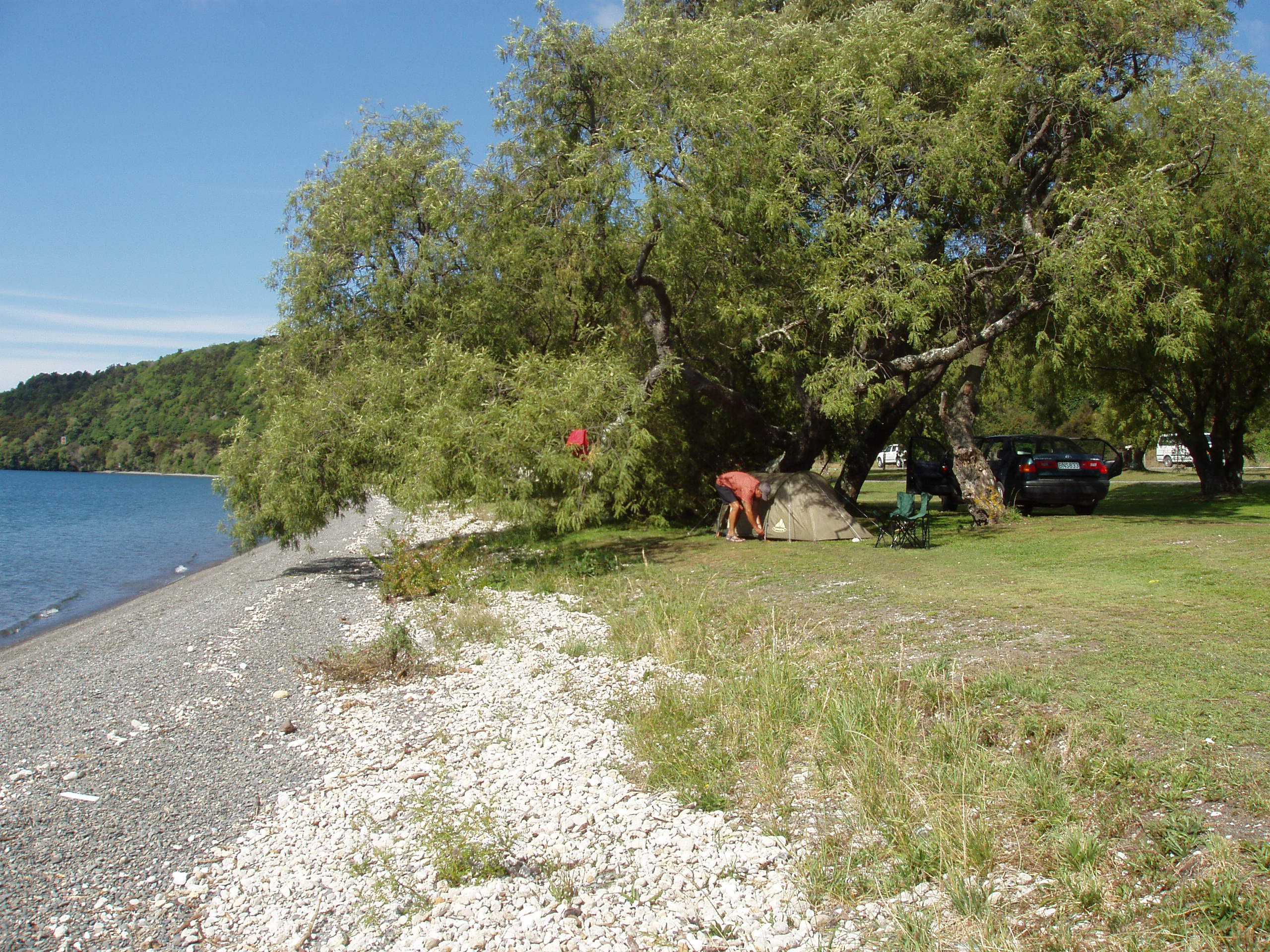 description:A man preparing his tent in the picnic place