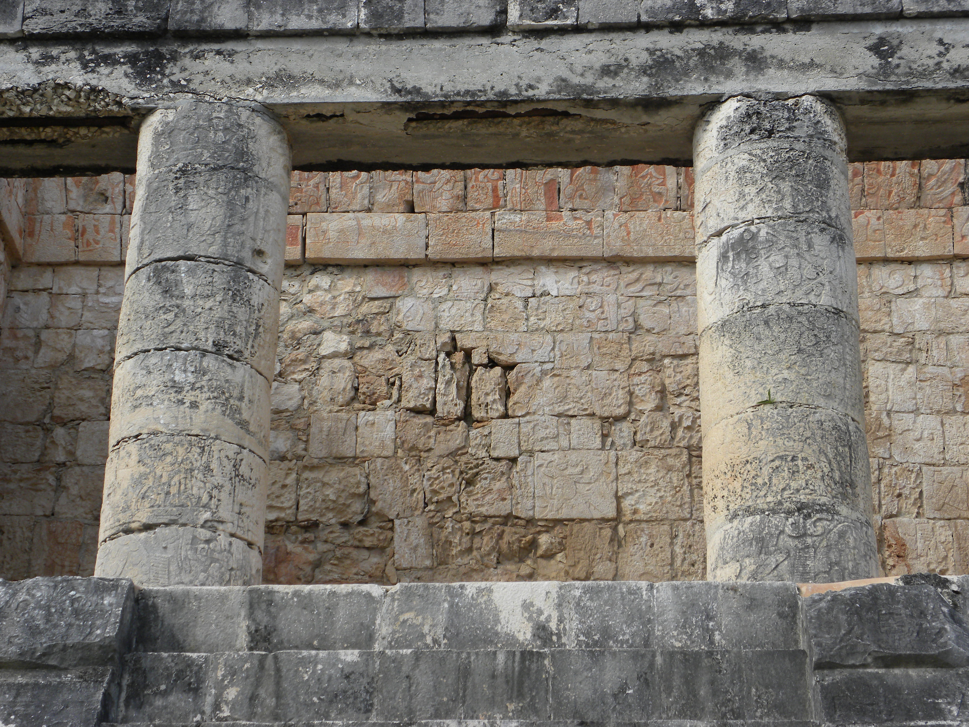 description:Pillars of an Mayan temple.