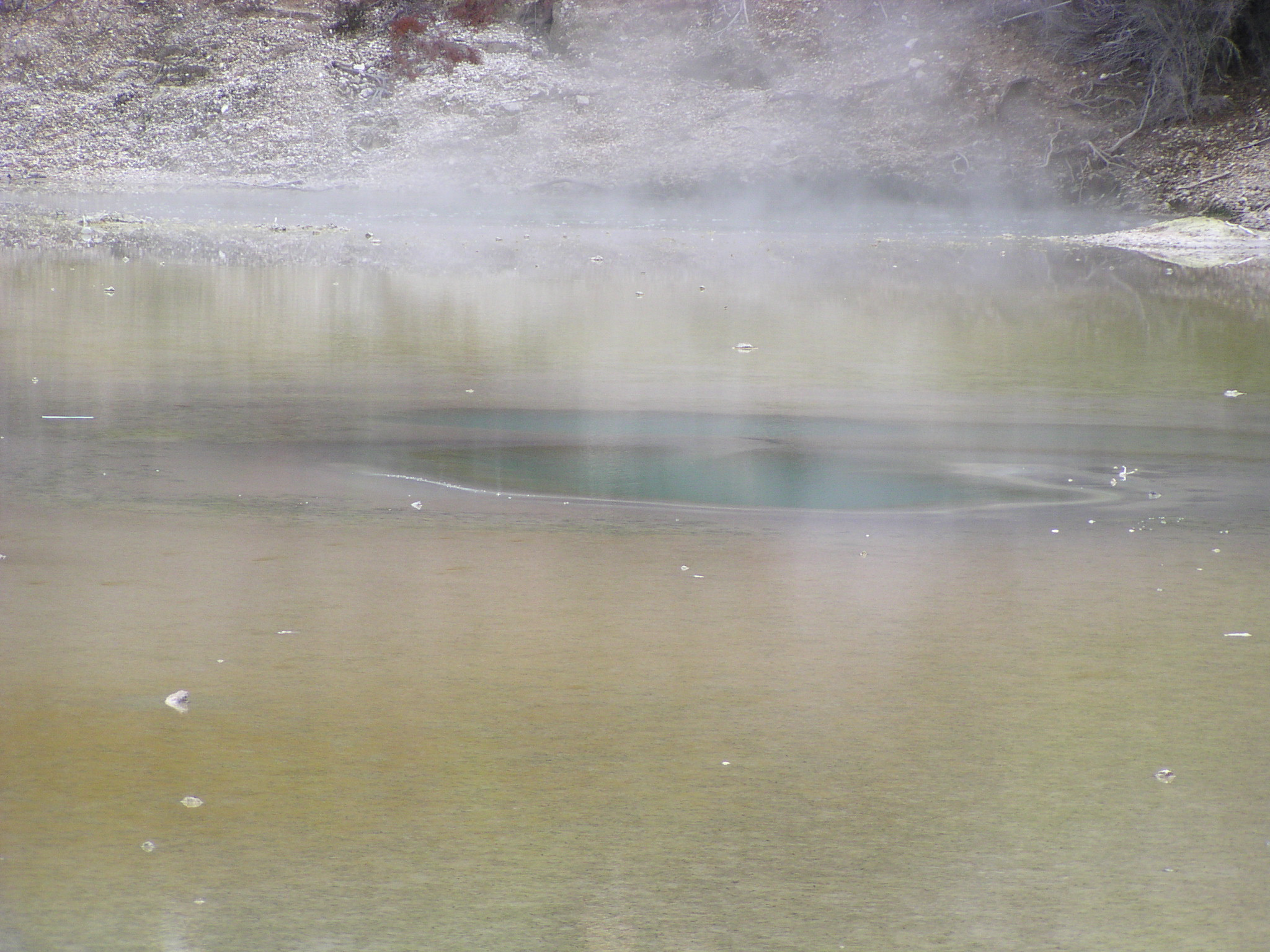 description:The presence of sulfur in the water gives the hot spring a yellow hue.